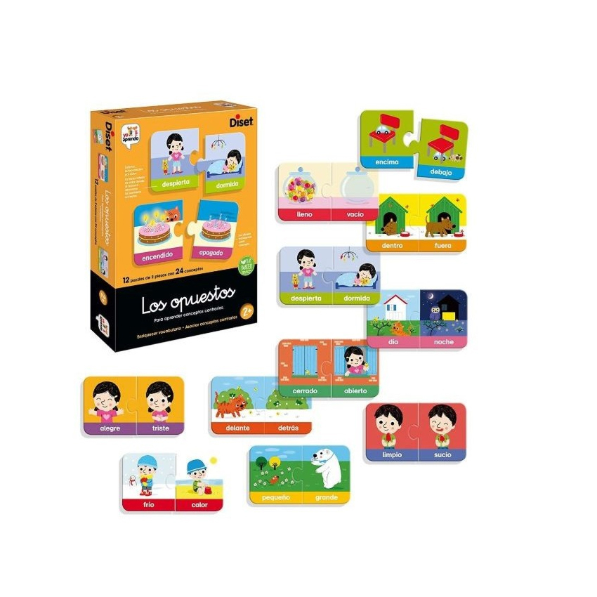12 puzzles de 2 piezas para que los más pequeños aprendan los opuestos.