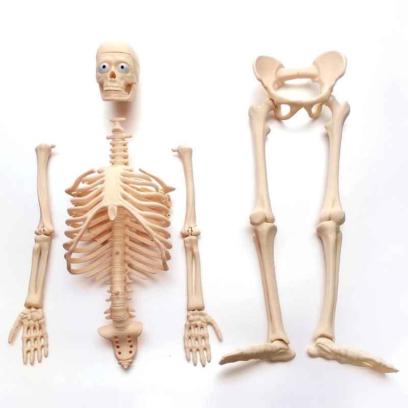 Modelo de cuerpo entero de 56 cm ideal para aprender cómo funciona el cuerpo humano, dispone de 45 piezas desmontables que muestran cada partes del cuerpo: piel, órganos vitales y esqueleto.